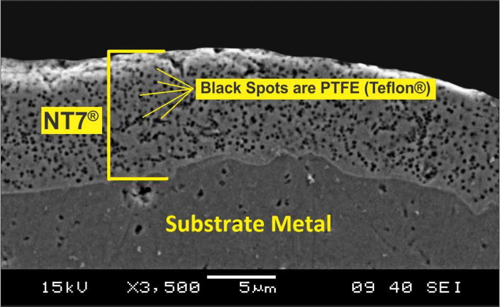 - NT7 has PTFE also known as Teflon® co-deposited in the nickel matrix. As wear occurs new PTFE particles are exposed and the self lubricating properties continue.
