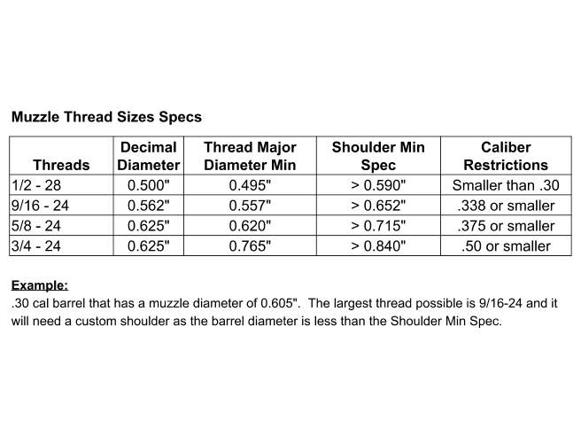 - Barrels for threading under min shoulder diameter will need a custom shoulder